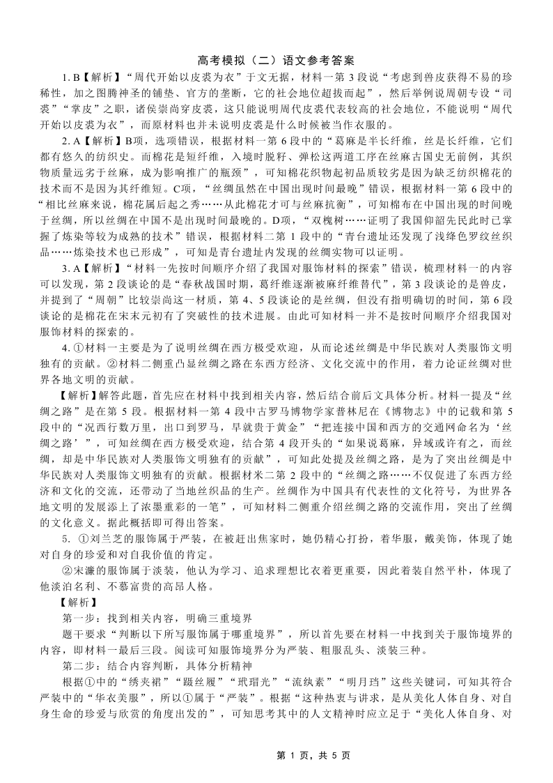 重庆市育才中学2025届高考模拟试题(二)语文答案.pdf