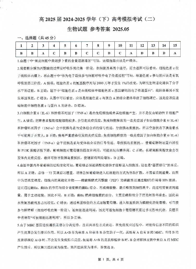 重庆市育才中学2025届高考模拟试题(二)生物答案.pdf
