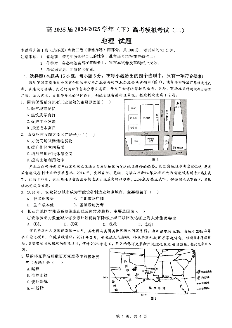 重庆市育才中学2025届高考模拟试题(二)地理.pdf