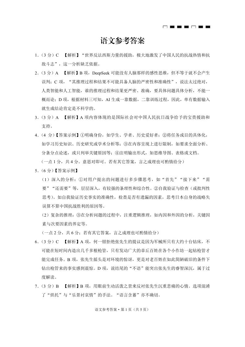 巴蜀中学2025届高考适应性月考卷(九)语文-答案.pdf