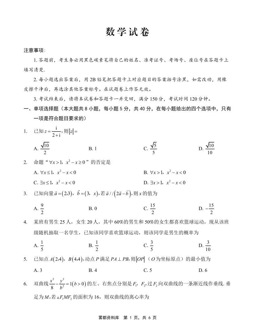 巴蜀中学2025届高考适应性月考卷(九)数学.pdf