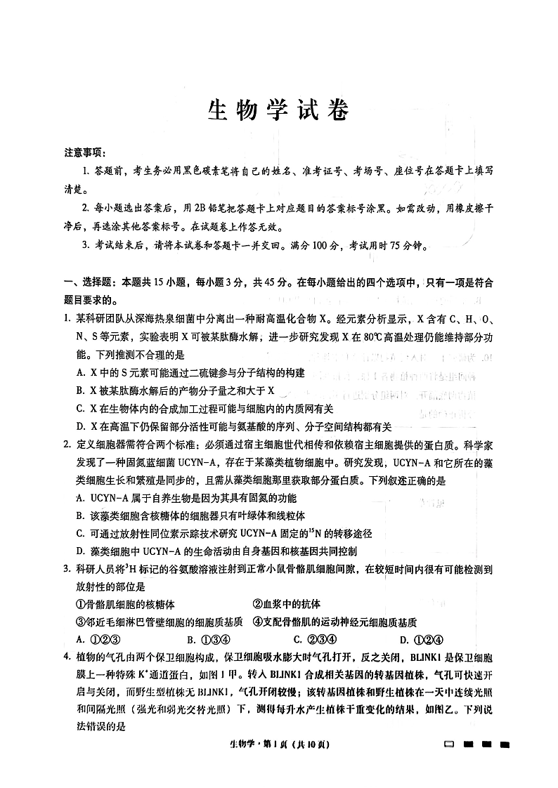 巴蜀中学2025届高考适应性月考卷(九)生物.pdf