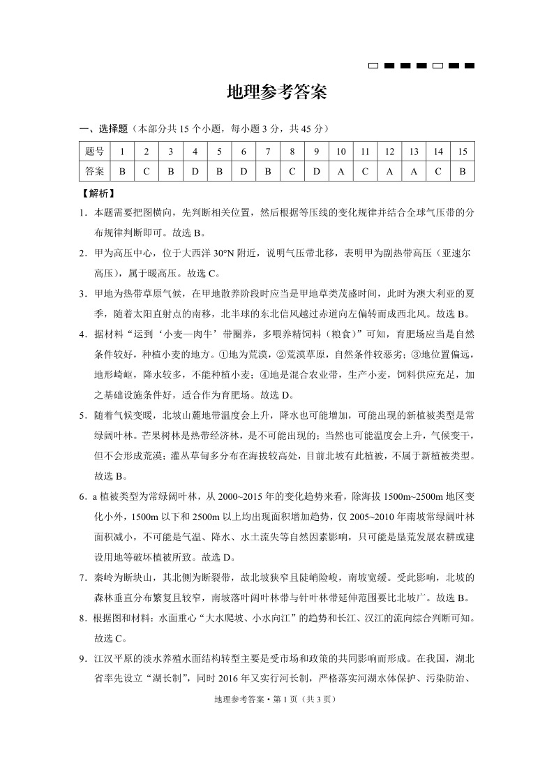 巴蜀中学2025届高考适应性月考卷(九)地理-答案.pdf