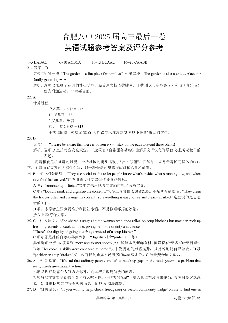 合肥八中最后一卷 英语答案.pdf