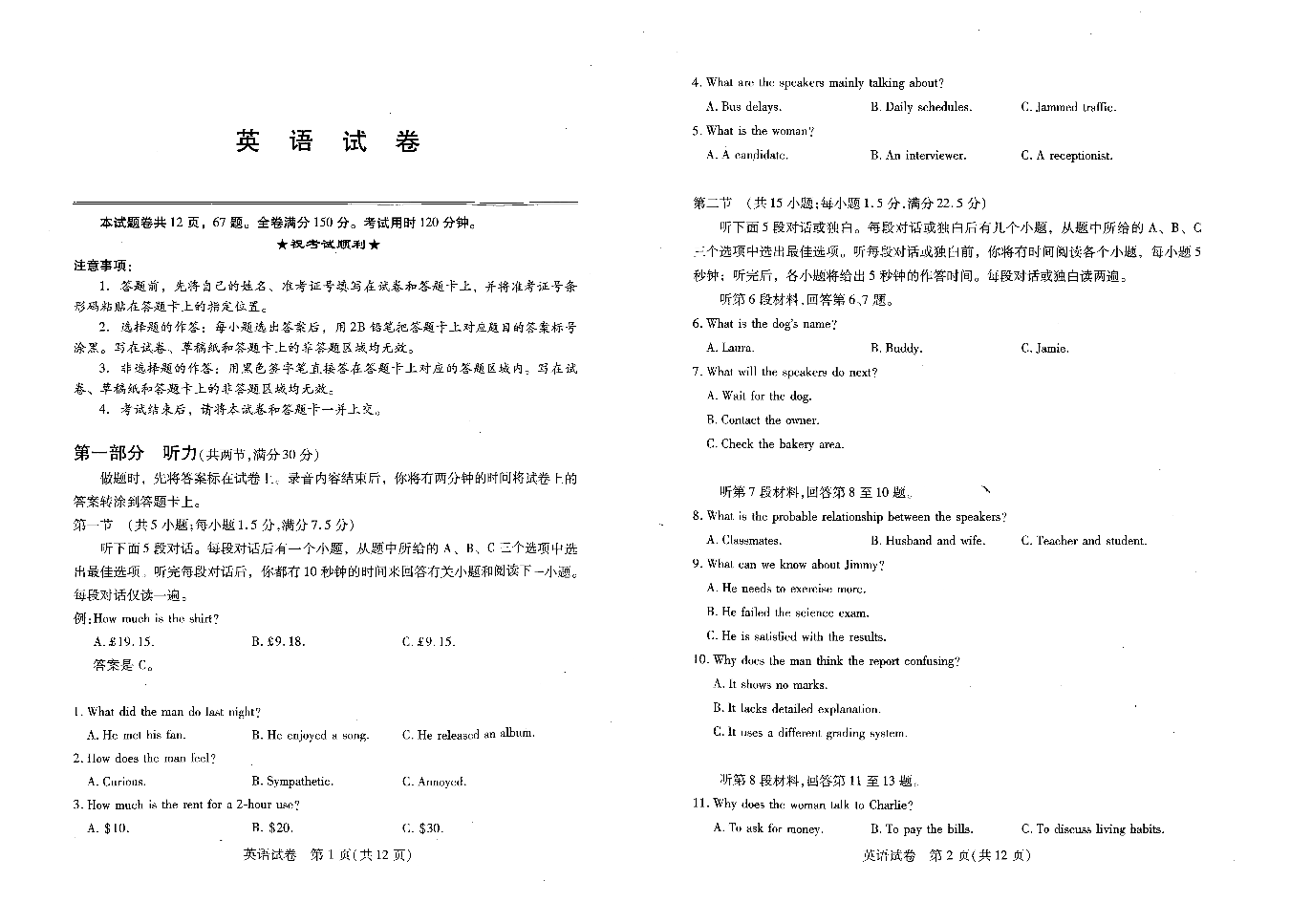 武汉市2025届高三年级五月模拟训练试题 英语.pdf