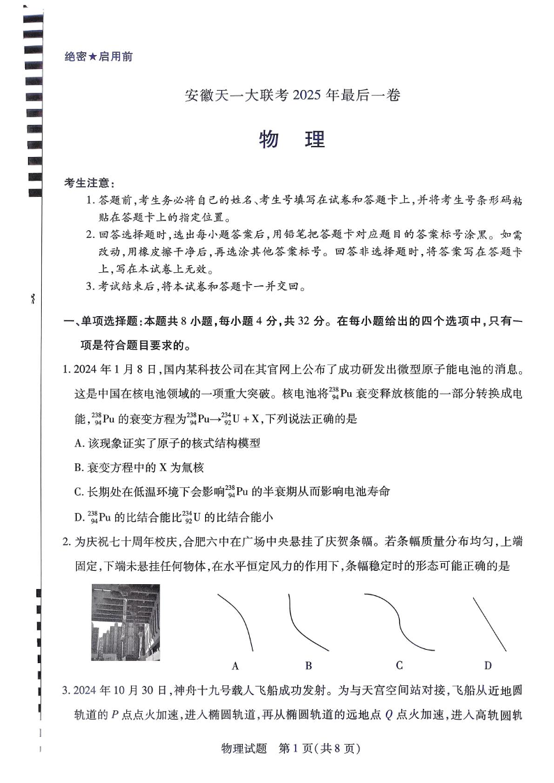 安徽天一大联考2025年最后一卷 物理.pdf