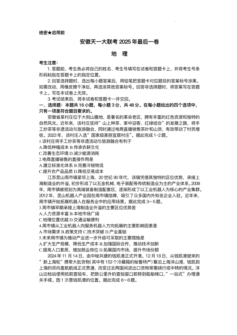 安徽天一大联考2025年最后一卷 地理.pdf