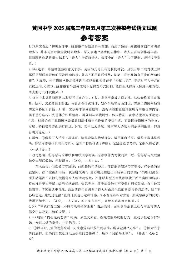 湖北省黄冈中学2025届高三第三次模拟考试 语文答案.pdf