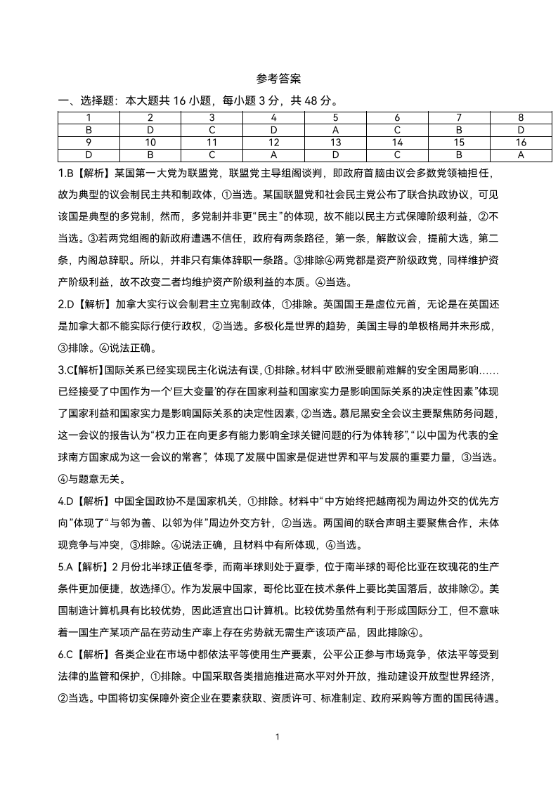 安徽省“江南十校”2024-2025学年高二5月份阶段联考 政治答案.pdf