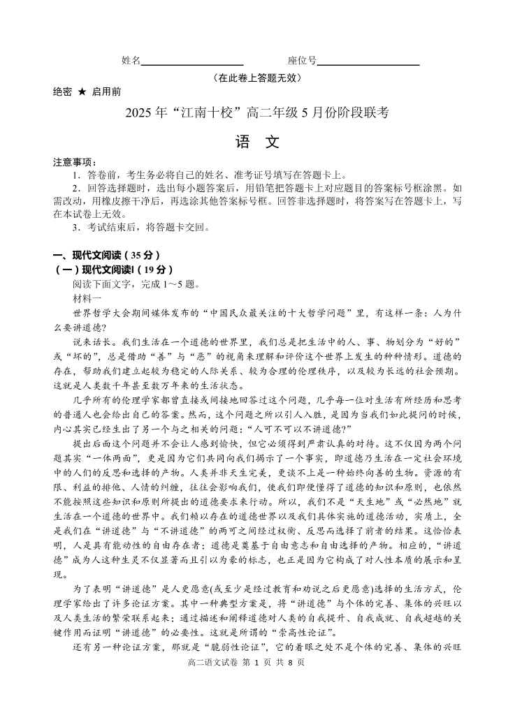 安徽省“江南十校”2024-2025学年高二5月份阶段联考 语文.pdf