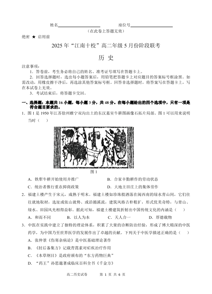 安徽省“江南十校”2024-2025学年高二5月份阶段联考 历史.pdf