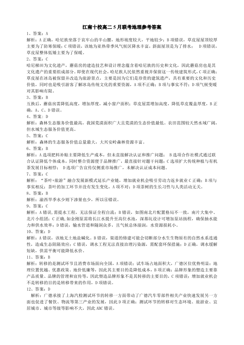 安徽省“江南十校”2024-2025学年高二5月份阶段联考 地理答案.pdf