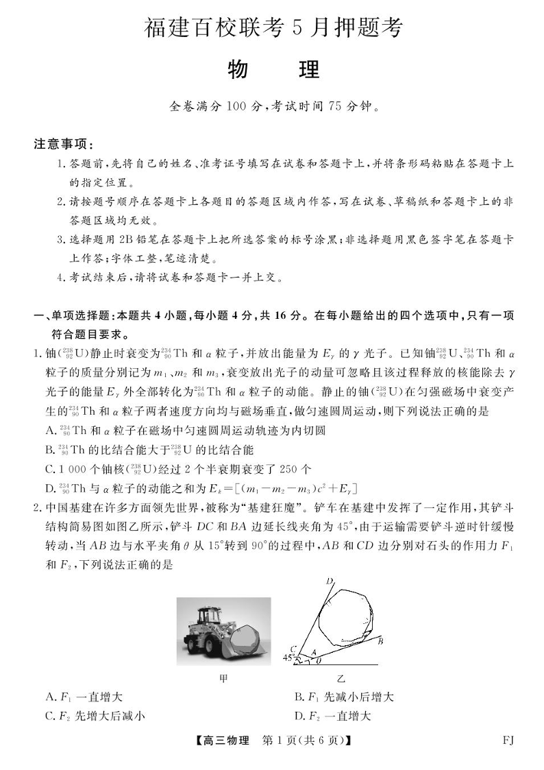 福建百校联考2025届高三5月押题考试-物理试卷(含答案).pdf