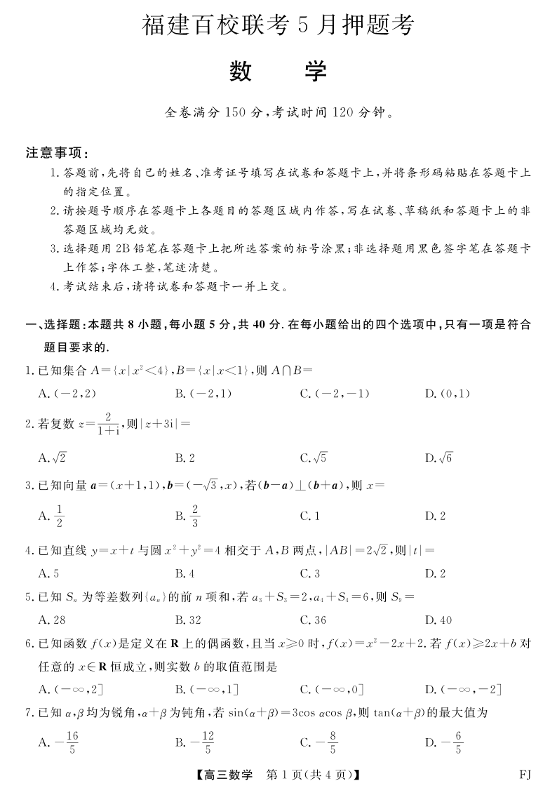 福建百校联考2025届高三5月押题考试-数学试卷(含答案).pdf