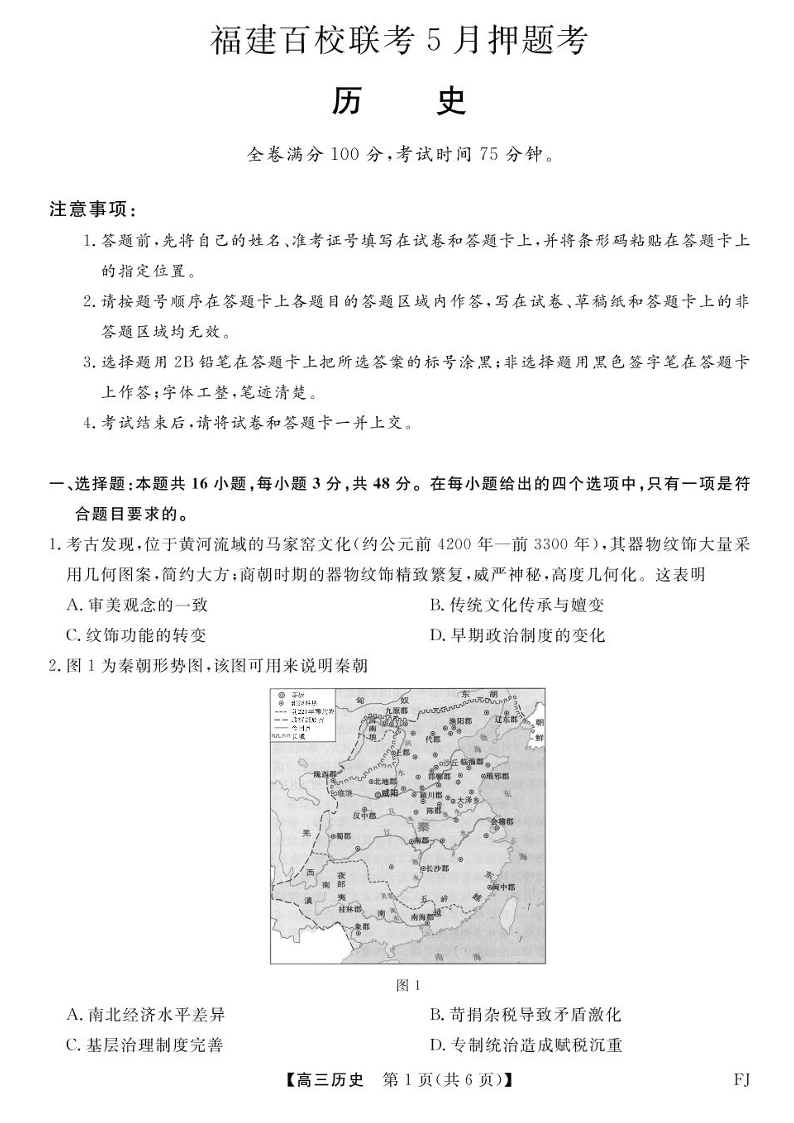 福建百校联考2025届高三5月押题考试-历史试卷(含答案).pdf