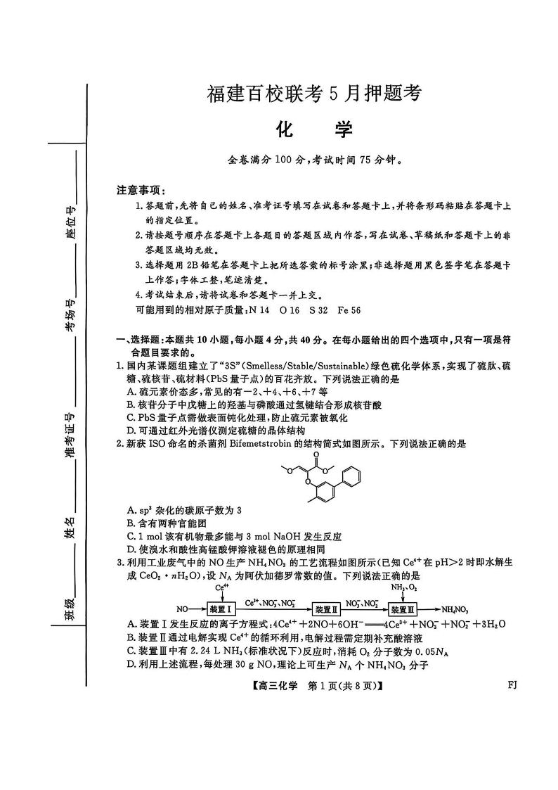 福建百校联考2025届高三5月押题考试-化学试卷(含答案).pdf