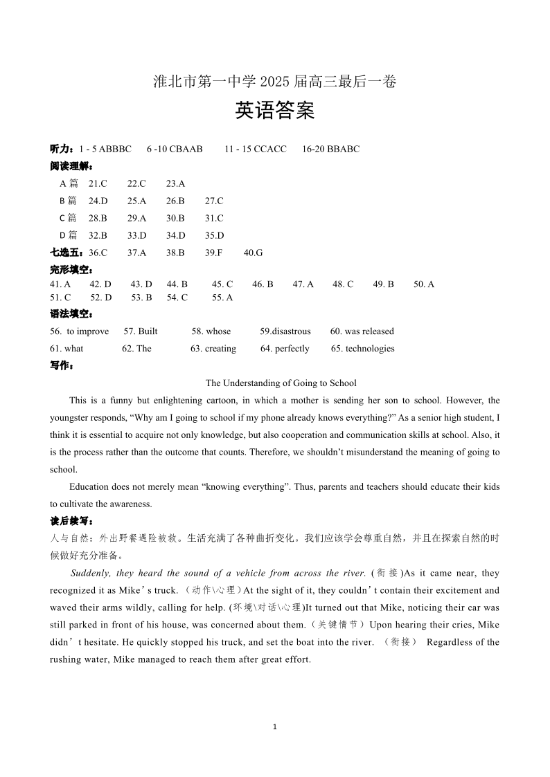 淮北一中英语答案 .pdf