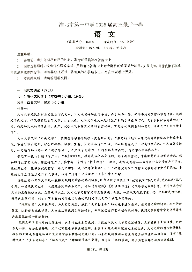 【语文】淮北市第一中学2025届高三最后一卷.pdf