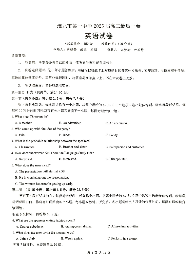 【英语】淮北市第一中学2025届高三最后一卷.pdf