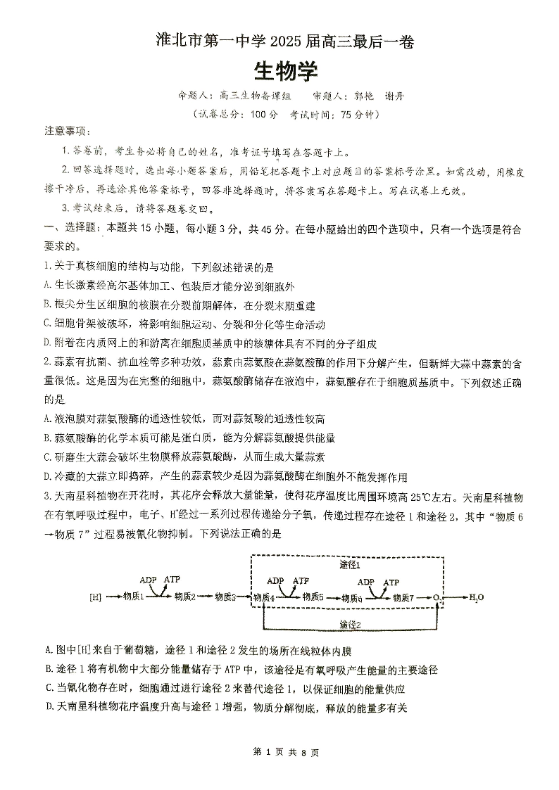 【生物】淮北市第一中学2025届高三最后一卷.pdf