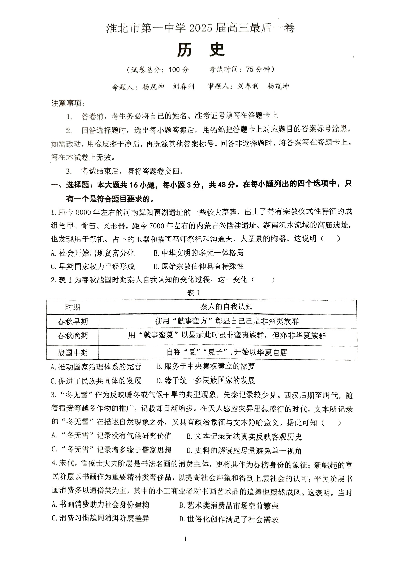 【历史】淮北市第一中学2025届高三最后一卷.pdf