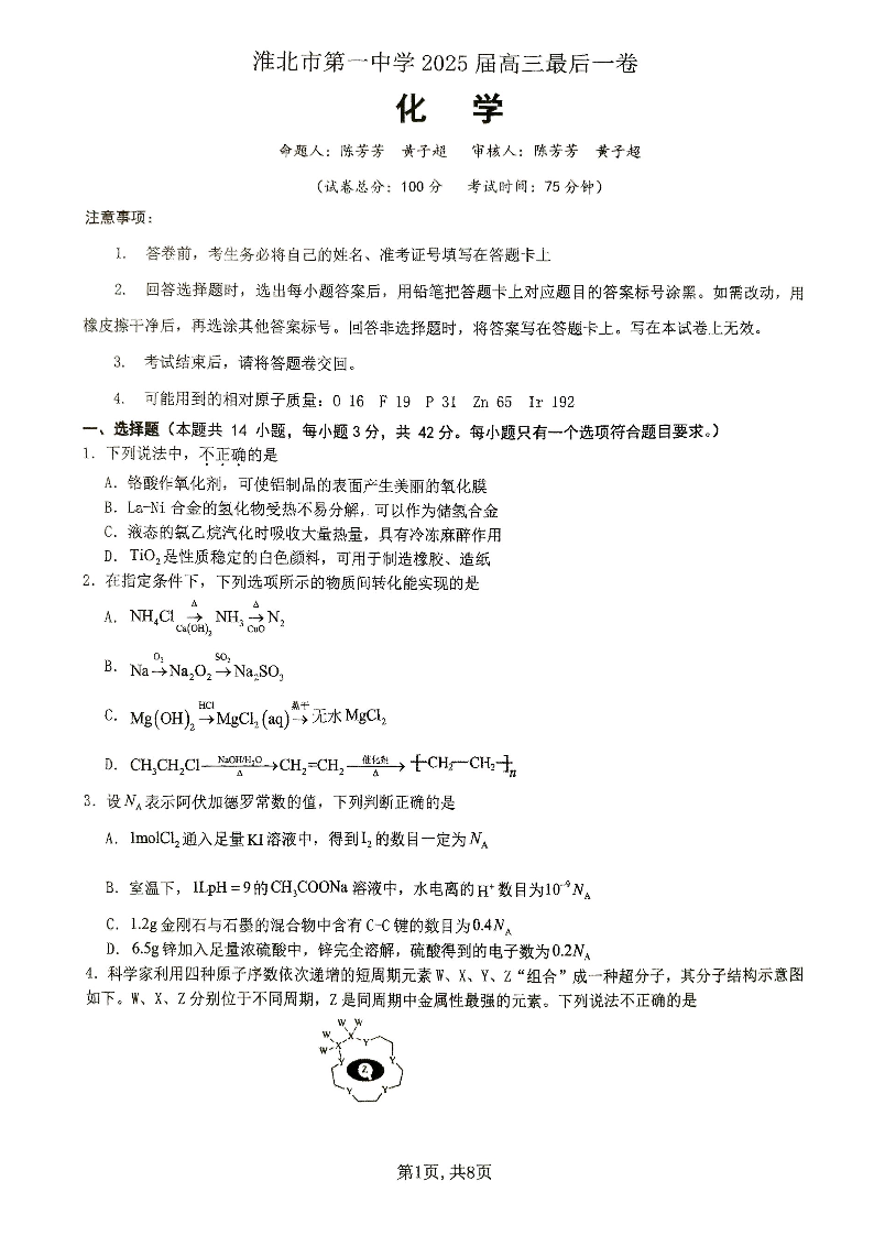 【化学】淮北市第一中学2025届高三最后一卷.pdf