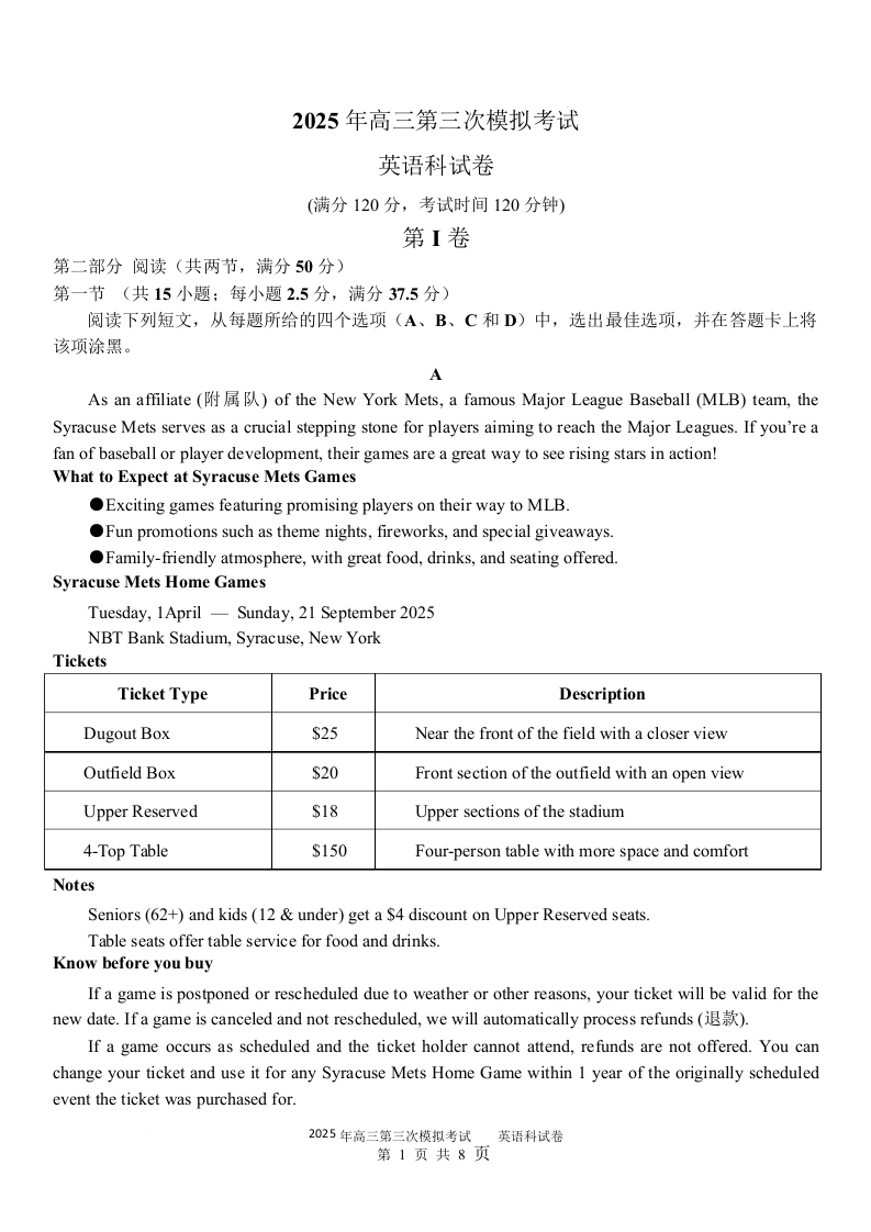 广东省汕头市2025届高三第三次模拟考试 英语.docx