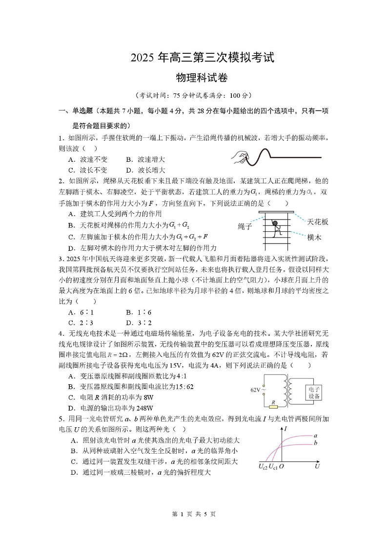 广东省汕头市2025届高三第三次模拟考试 物理.pdf