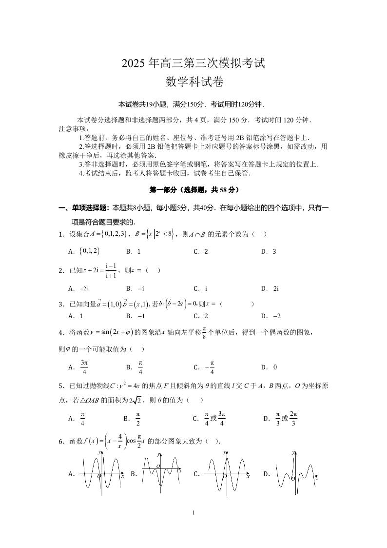 广东省汕头市2025届高三第三次模拟考试 数学.pdf