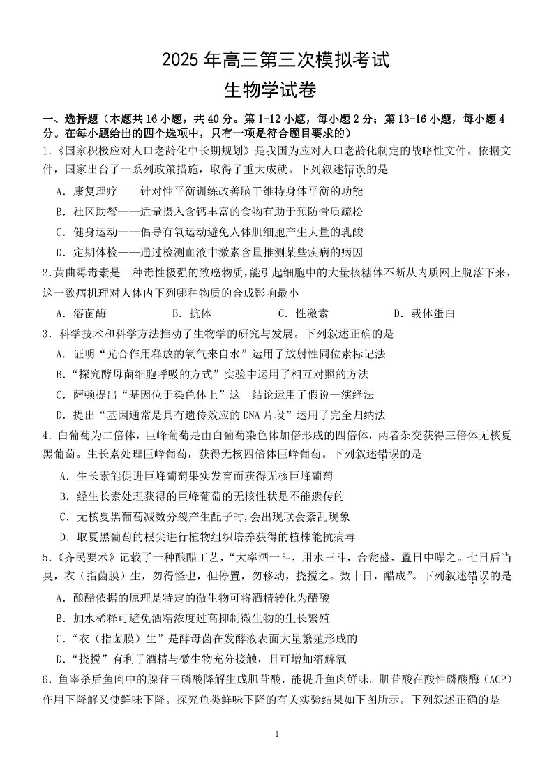 广东省汕头市2025届高三第三次模拟考试 生物.pdf