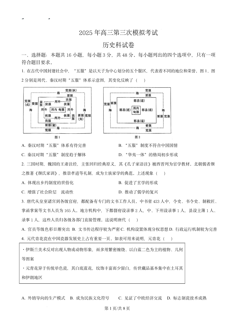 广东省汕头市2025届高三第三次模拟考试 历史.pdf