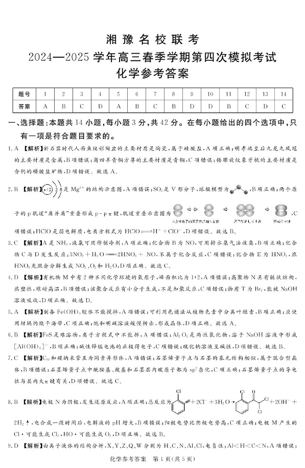 湘豫名校联考2024-2025学年高三下学期第四次模拟考试 化学参考答案.pdf