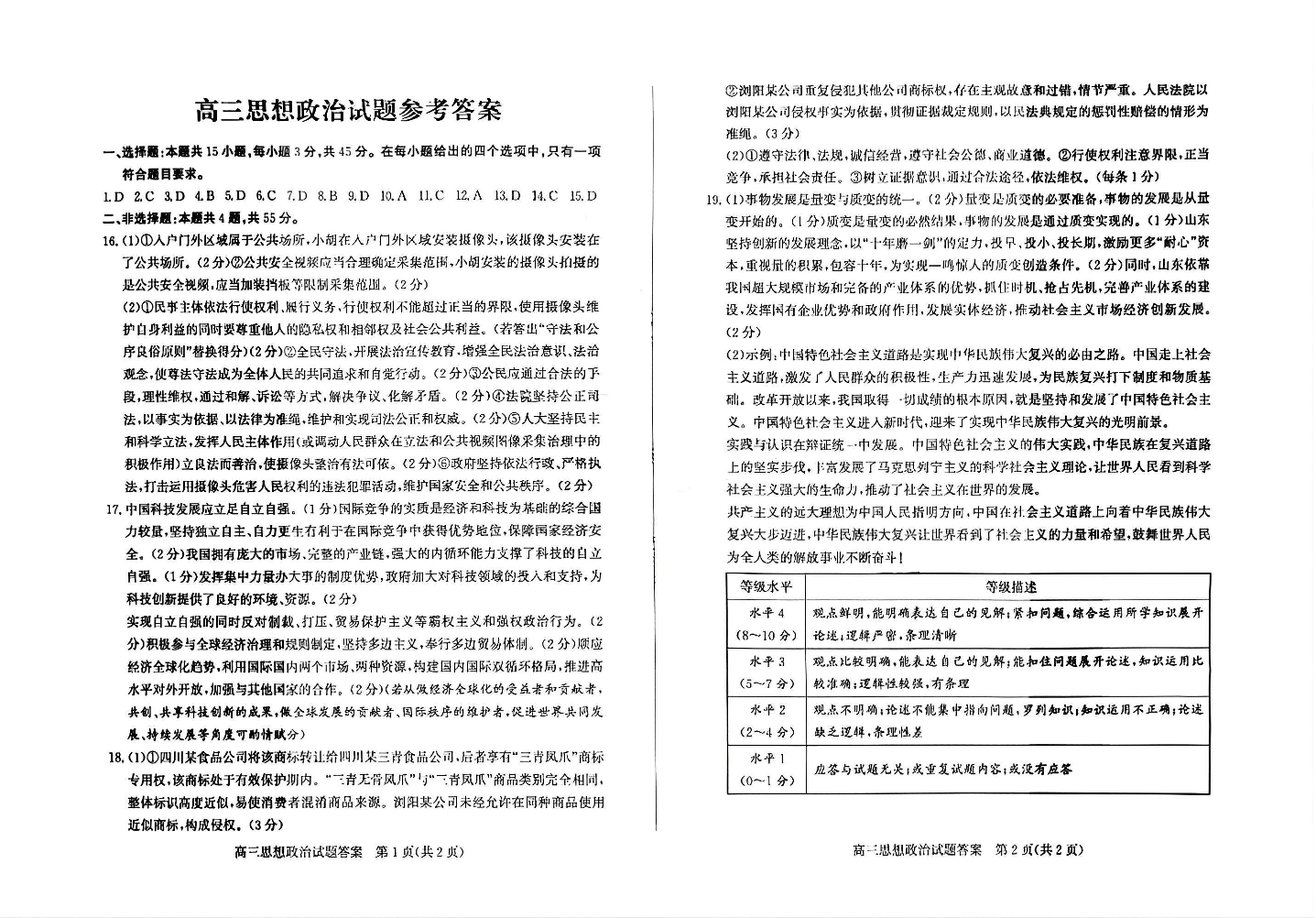 山东省德州市2025年高三年级第三次适应性检测 政治答案.pdf