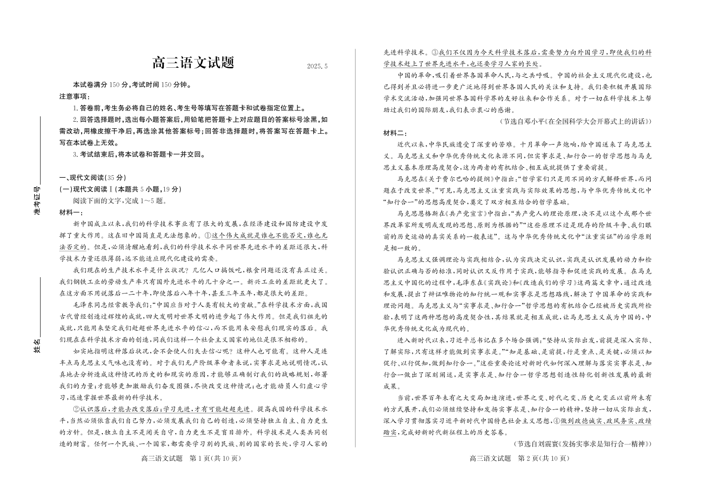 山东省德州市2025年高三年级第三次适应性检测 语文.pdf