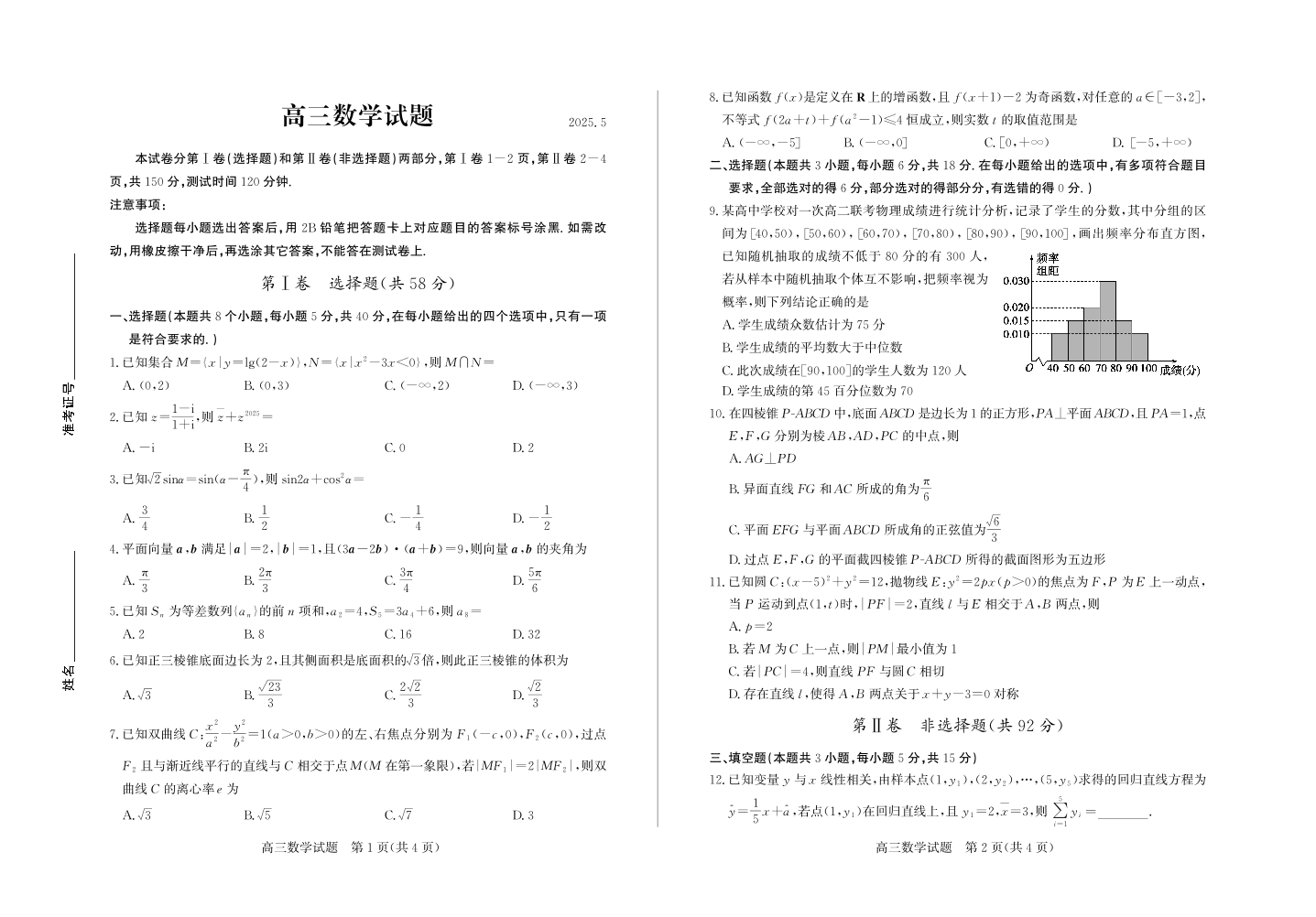 山东省德州市2025年高三年级第三次适应性检测 数学.pdf