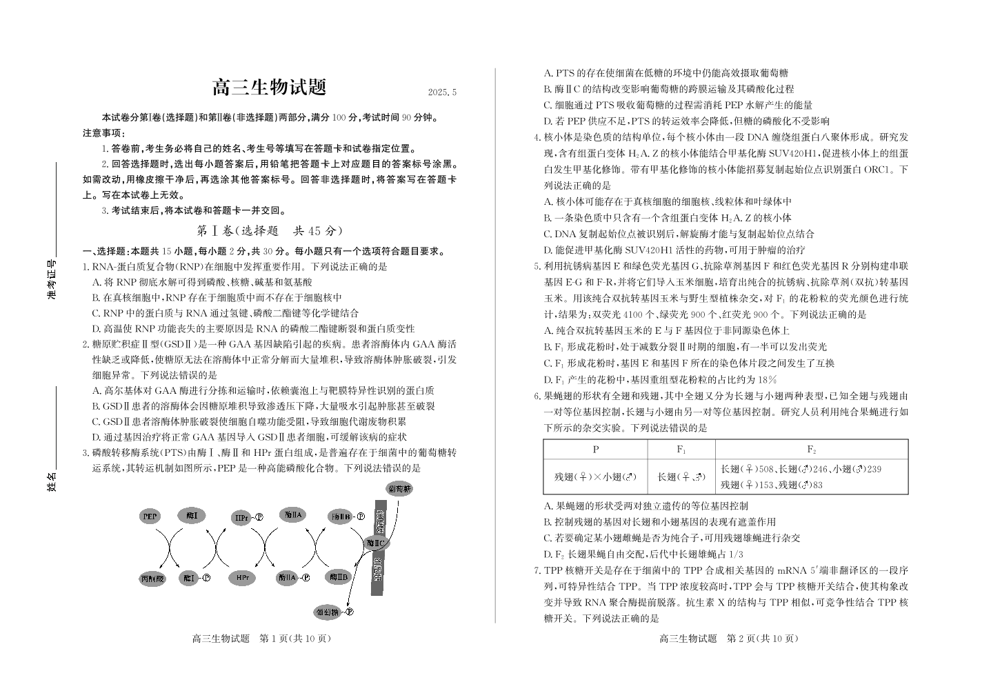 山东省德州市2025年高三年级第三次适应性检测 生物.pdf