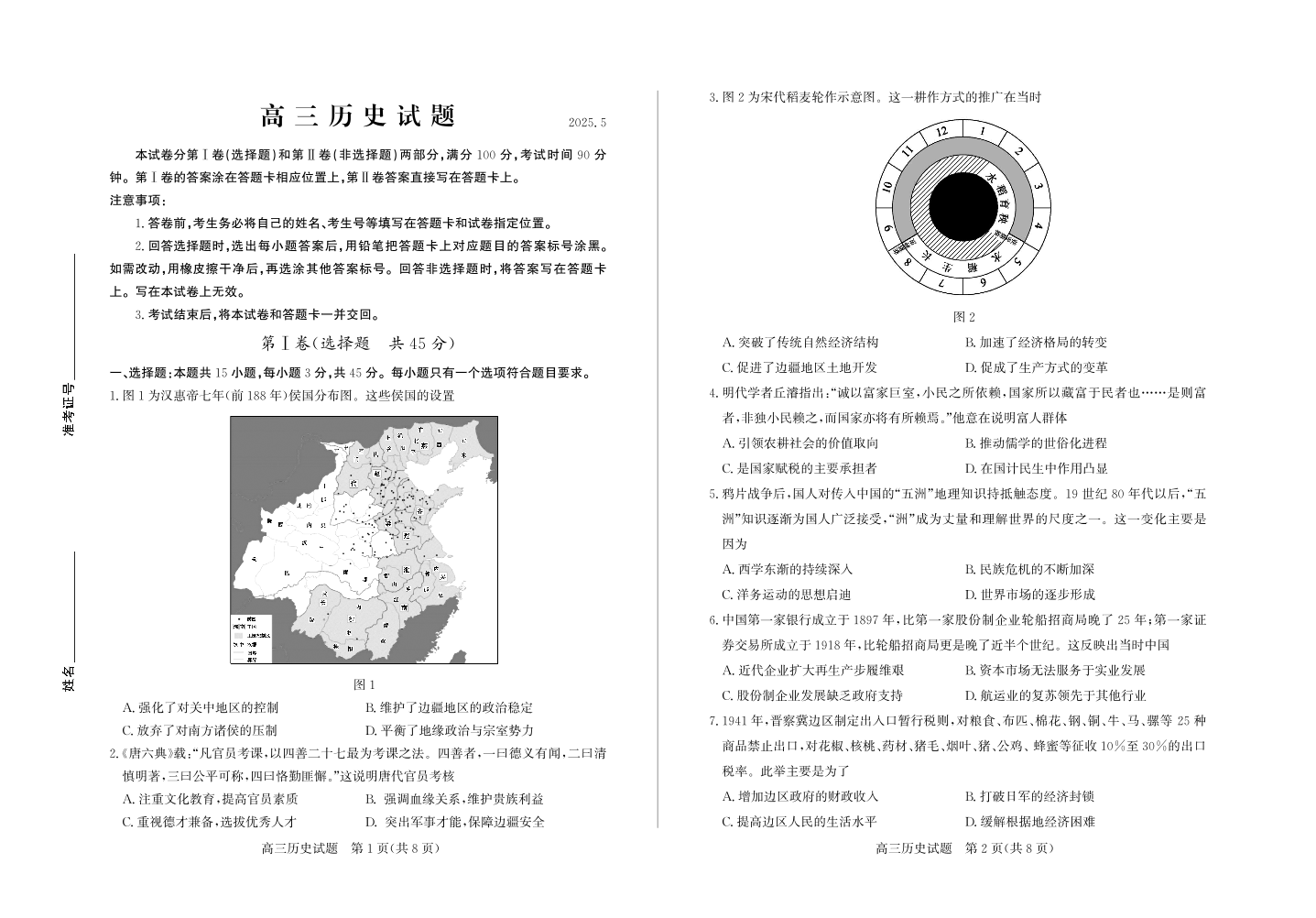 山东省德州市2025年高三年级第三次适应性检测 历史.pdf