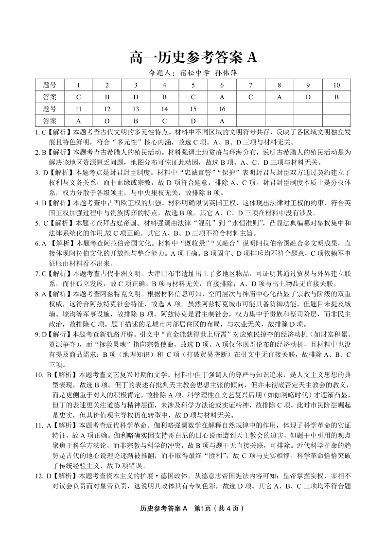历史答案A·2025年5月高一阶段考.pdf