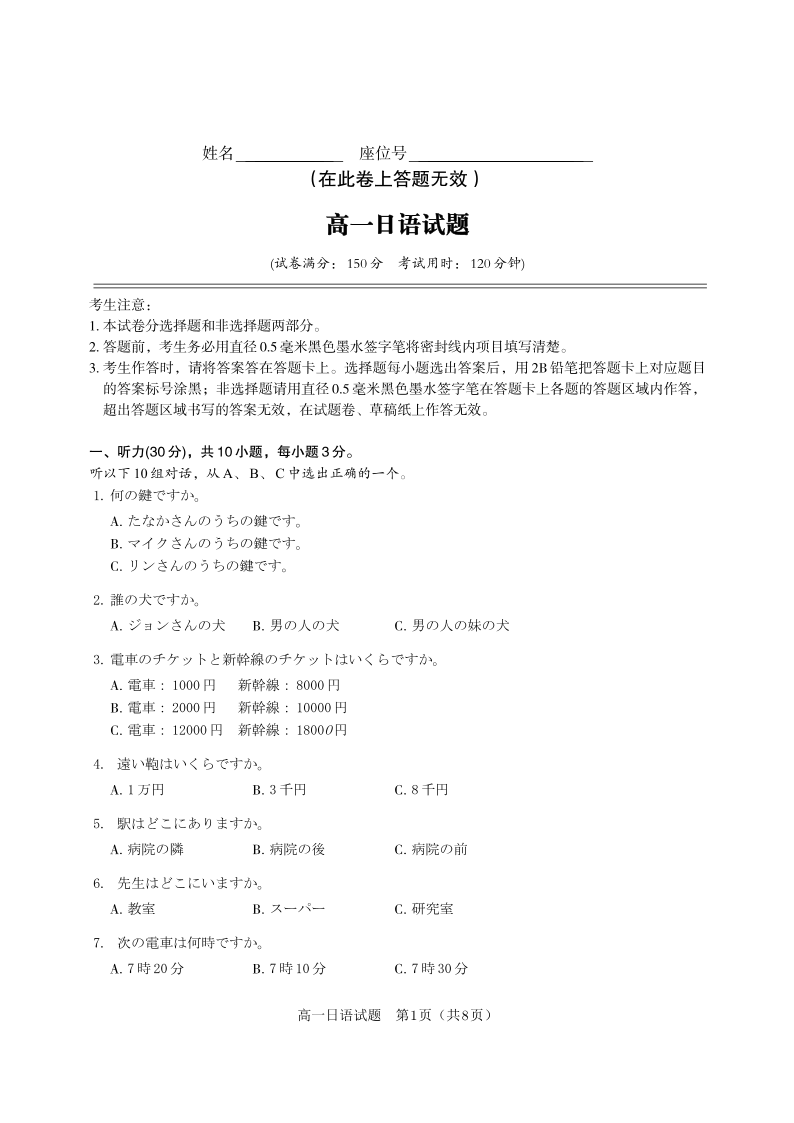 日语试题·2025年5月高一阶段考.pdf
