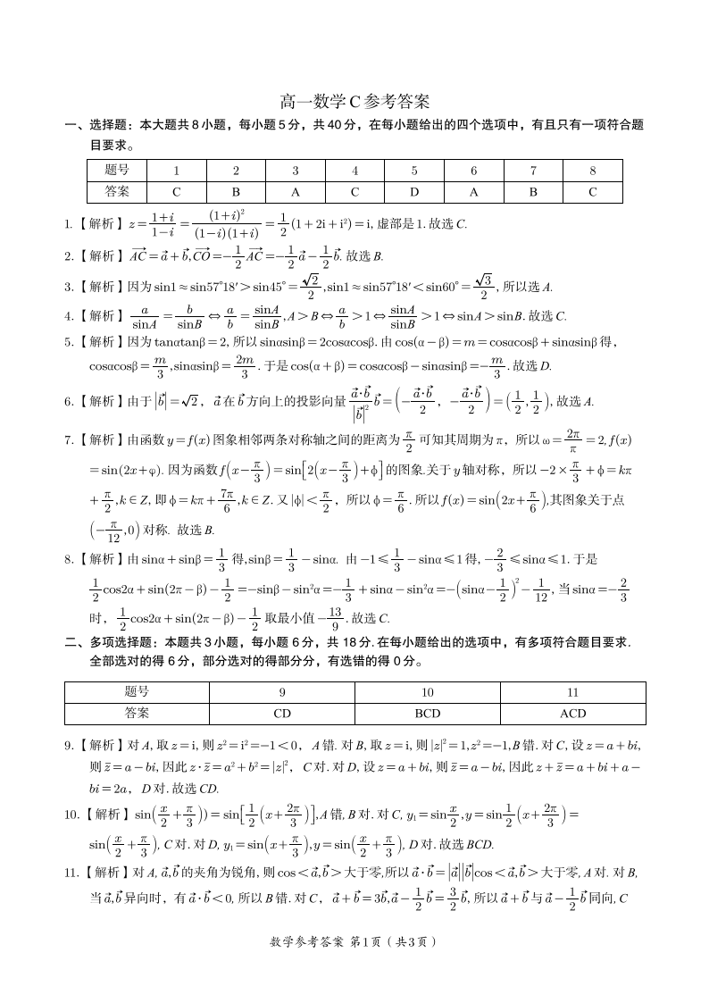 数学答案C·2025年5月高一阶段考.pdf