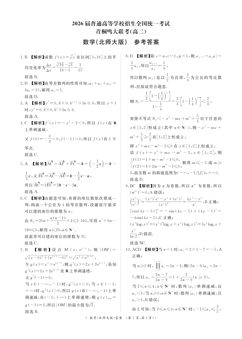 青桐鸣高二5月大联考 数学北师大版答案.pdf