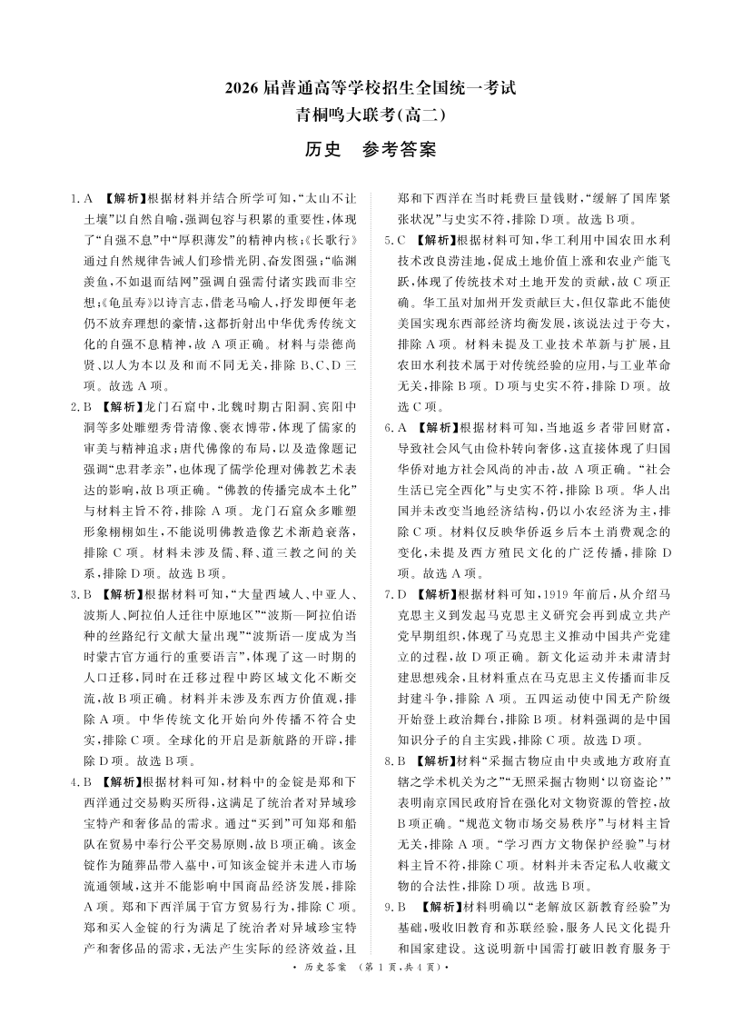 青桐鸣高二5月大联考 历史答案.pdf