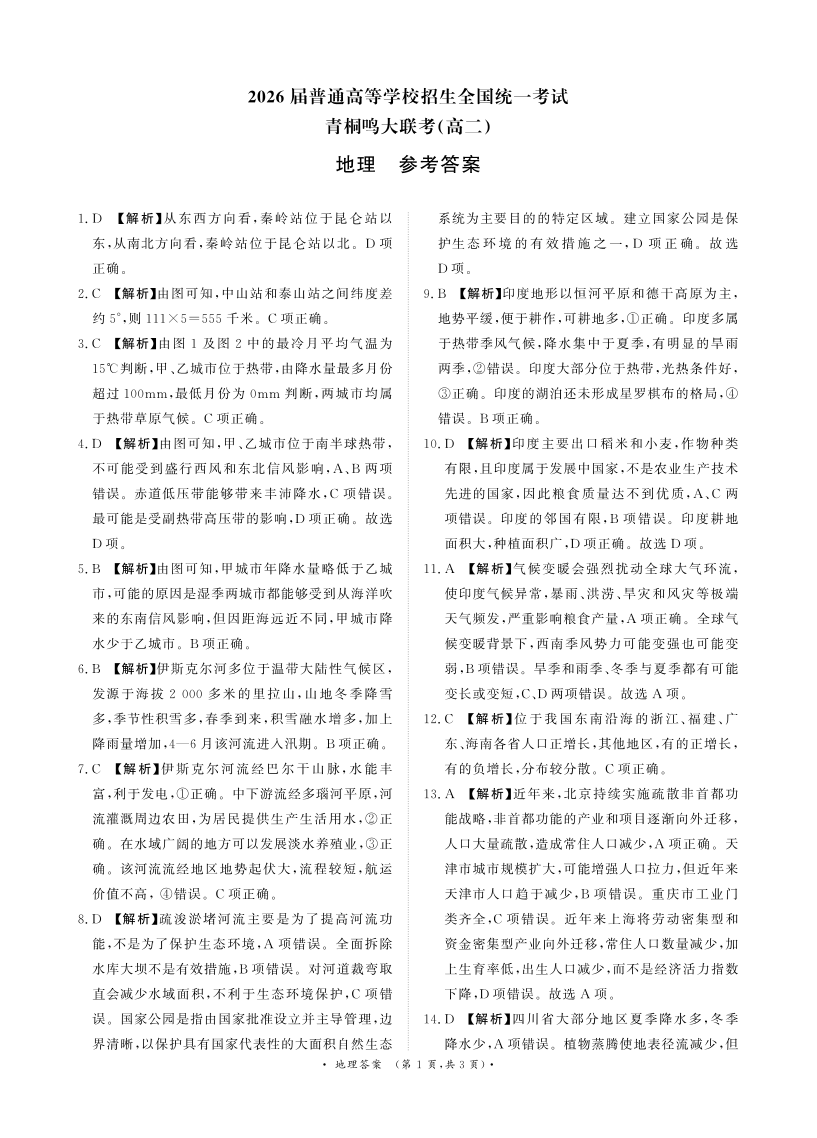 青桐鸣高二5月大联考 地理答案.pdf