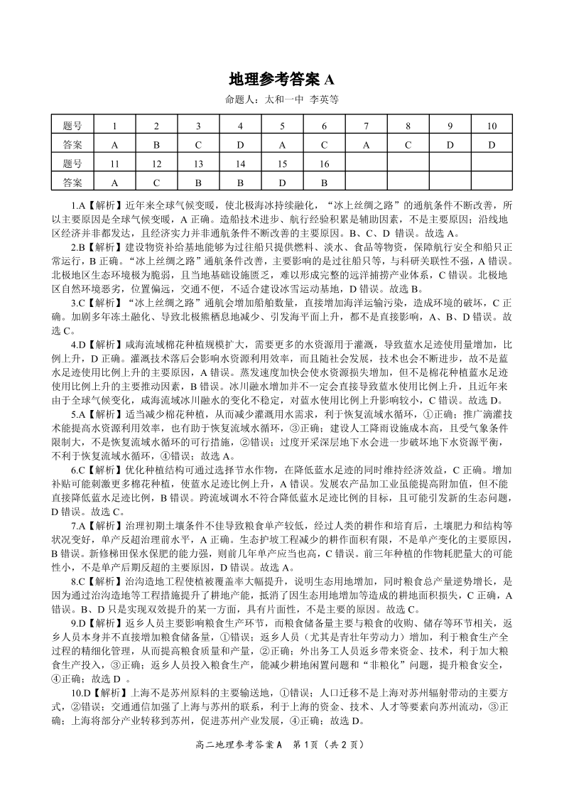 地理答案A·2025年5月高二阶段考.pdf
