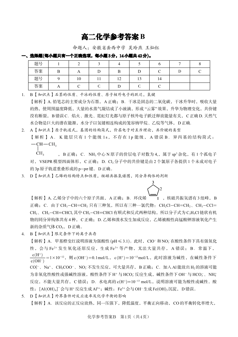 化学答案B·2025年5月高二阶段考.pdf