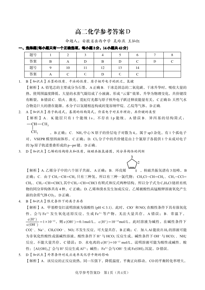 化学答案D·2025年5月高二阶段考.pdf