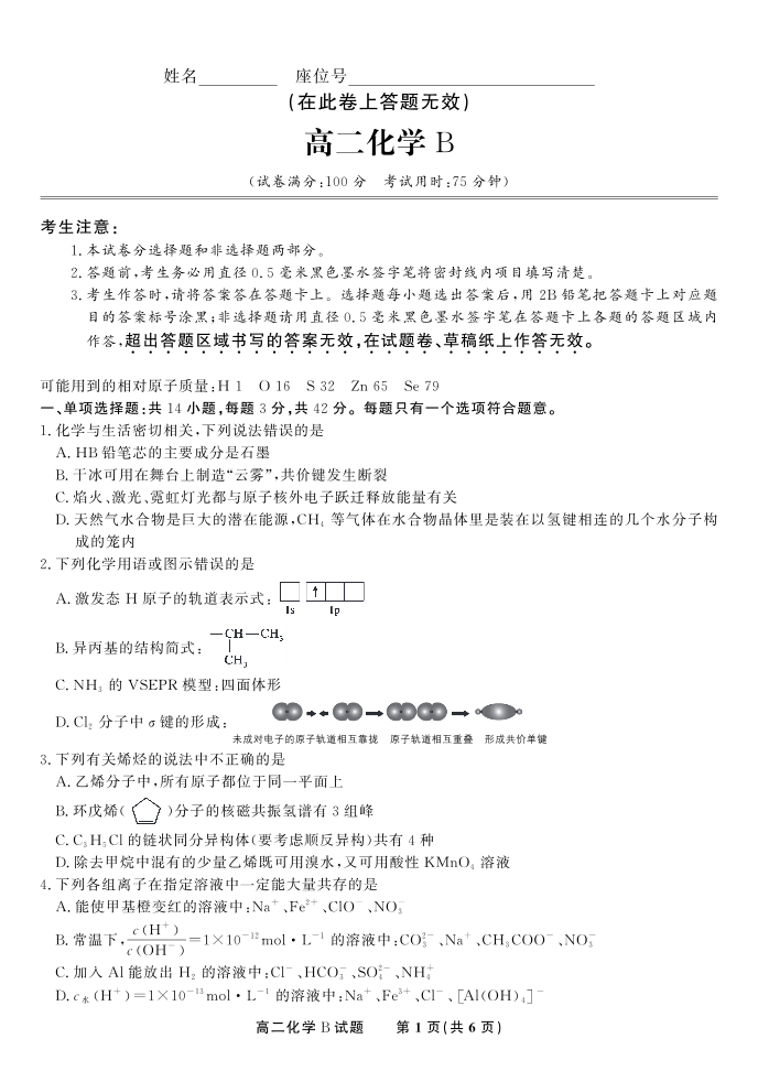 化学试题B·2025年5月高二阶段考.pdf