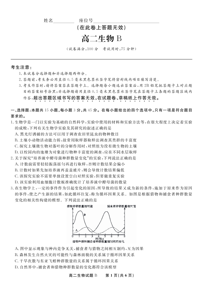 生物试题B·2025年5月高二阶段考.pdf
