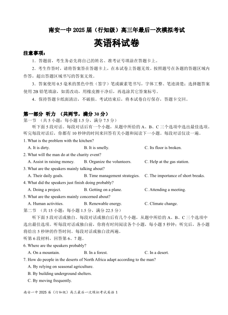 南安一中2025届(行知级)高三最后一次模拟考试 英语.pdf