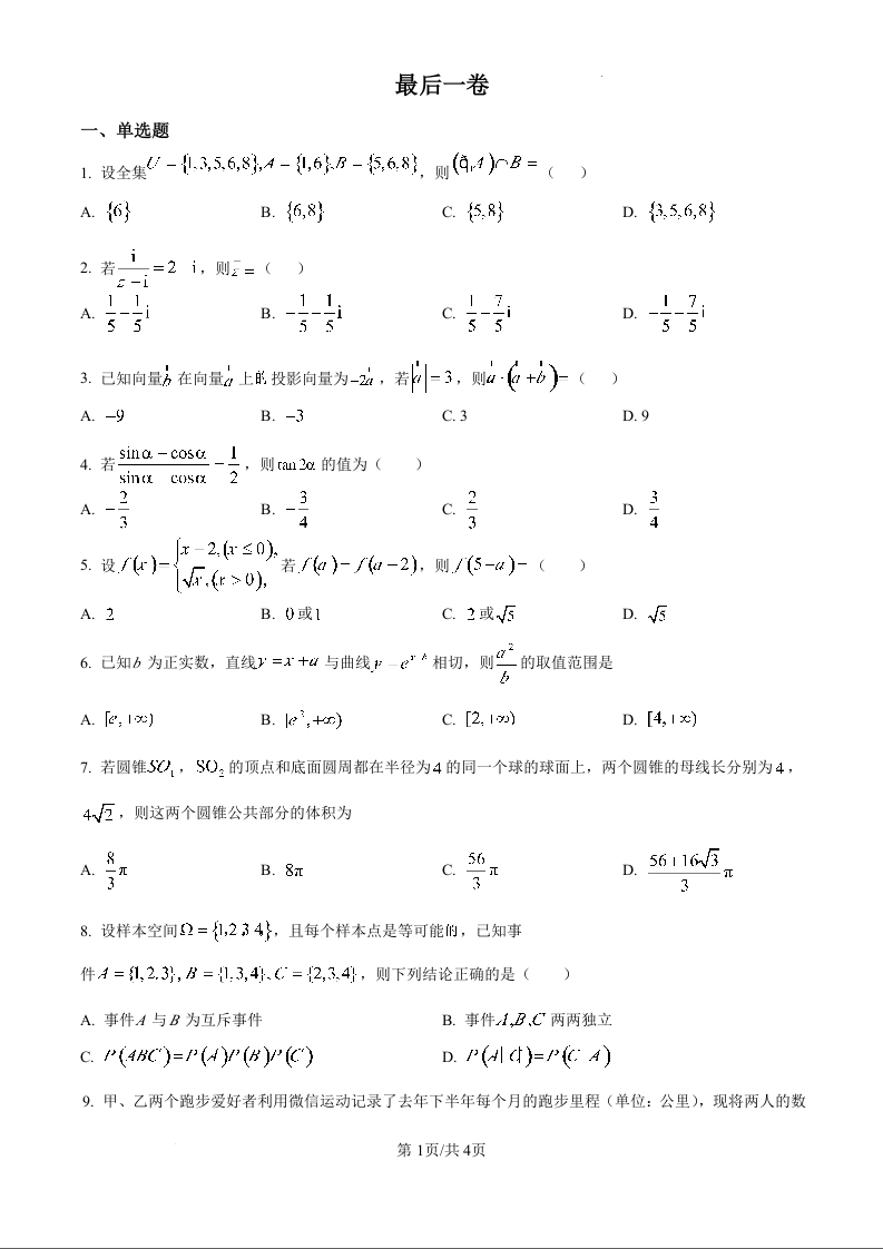 南安一中2025届(行知级)高三最后一次模拟考试 数学.docx